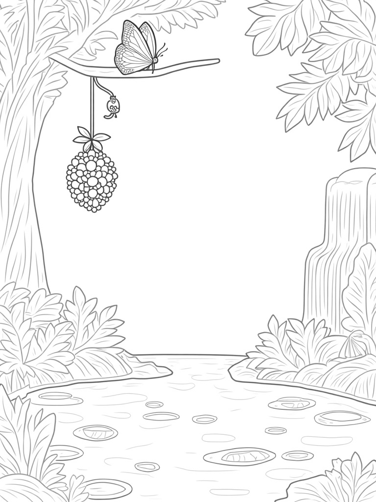 Jungle Canopy with Fish and Butterfly Coloring Page
