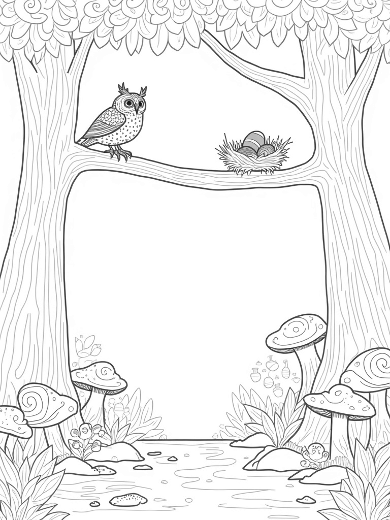 Jungle Canopy with Owl and Colorful Eggs Coloring Page