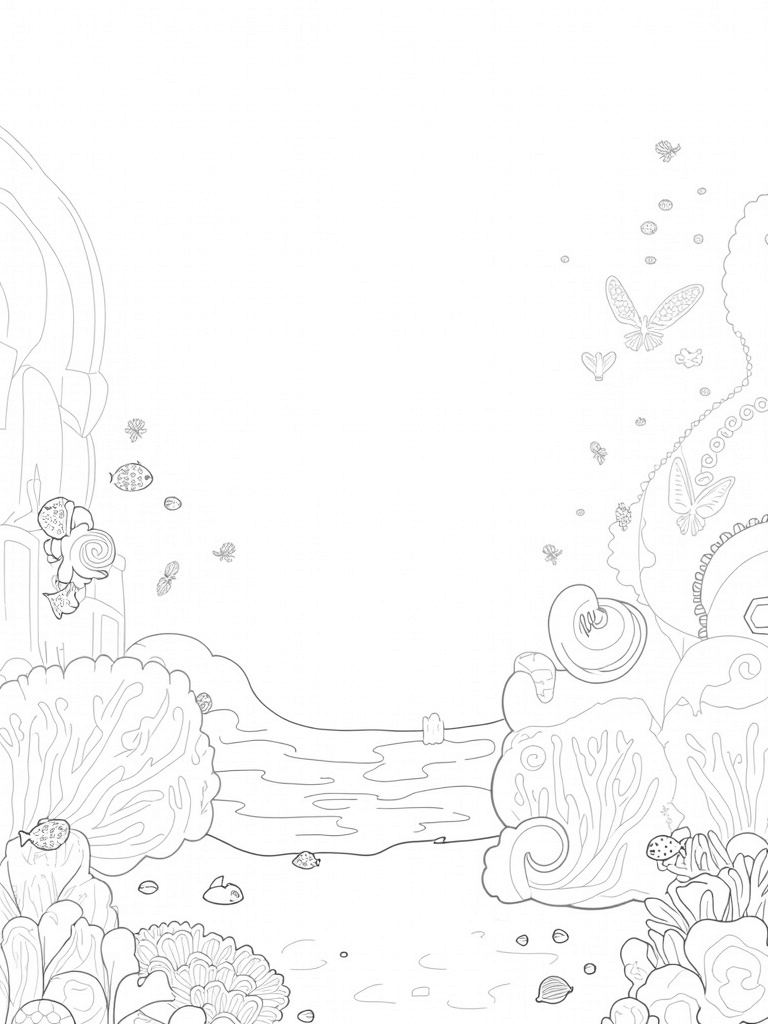 As you look closer, you’ll find scattered seashells of all shapes and sizes on the sandy bottom. And don’t miss the lone starfish resting on a vibrant anemone, stretching its arms towards the shimmering light that filters down from the surface. It’s a beautiful scene just waiting for your colors!