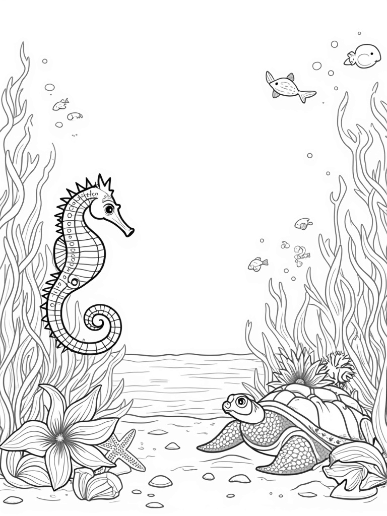 Underwater Garden with Seahorse and Jellyfish Coloring Page
