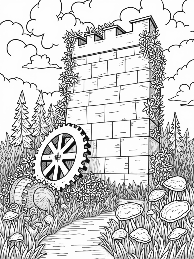 Colossal Stone Wall with a Tranquil Titan and Wildflowers Coloring Page