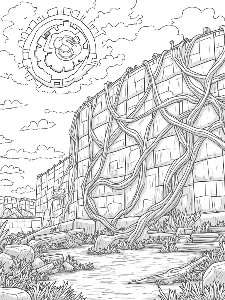 Colossal Wall of Vines and Floating Gears Coloring Page