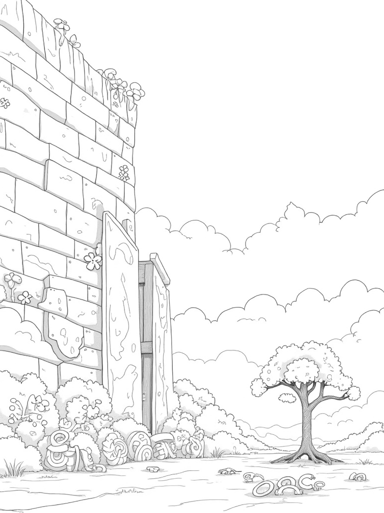 Colossal Wall with Twisting Vines and a Hidden Titan Coloring Page