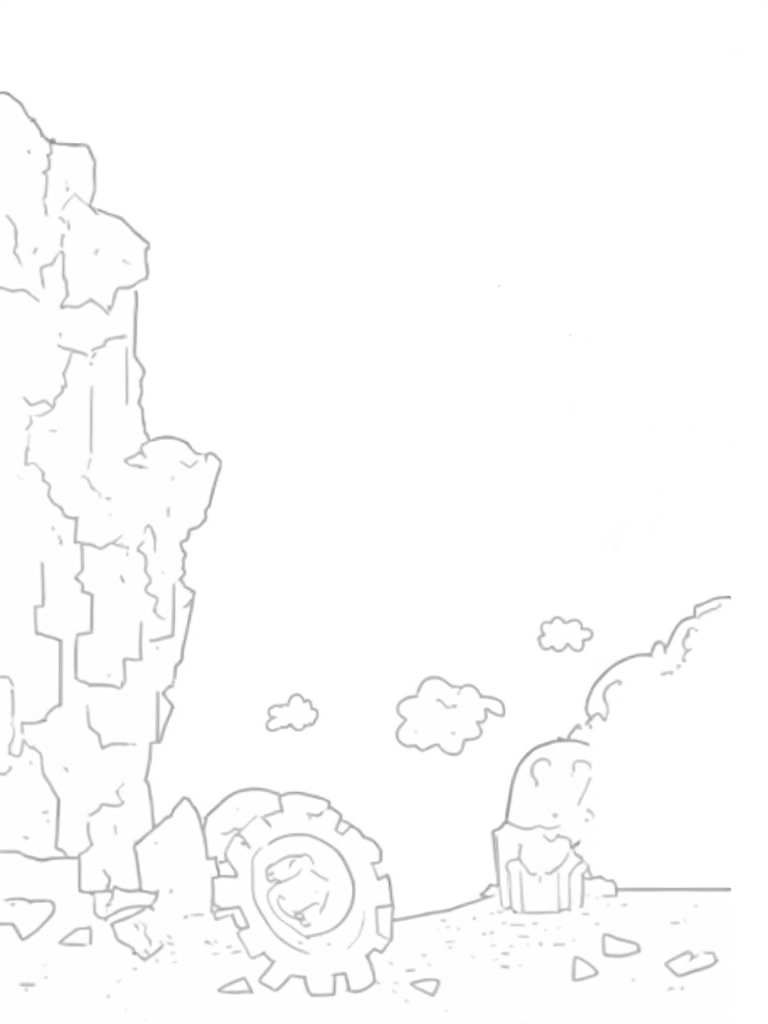 Crumbled City Wall with Titan Face and Gear Coloring Page