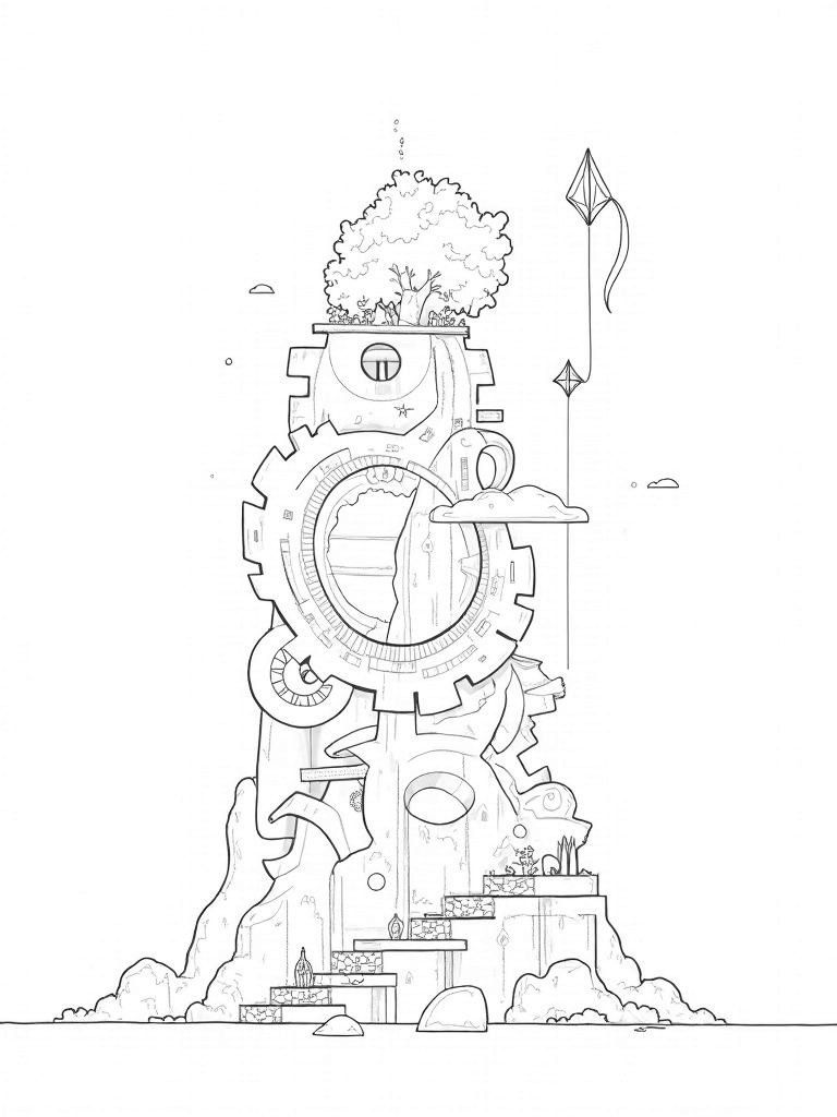 Gears, Titans, and a Towering Tree Coloring Page