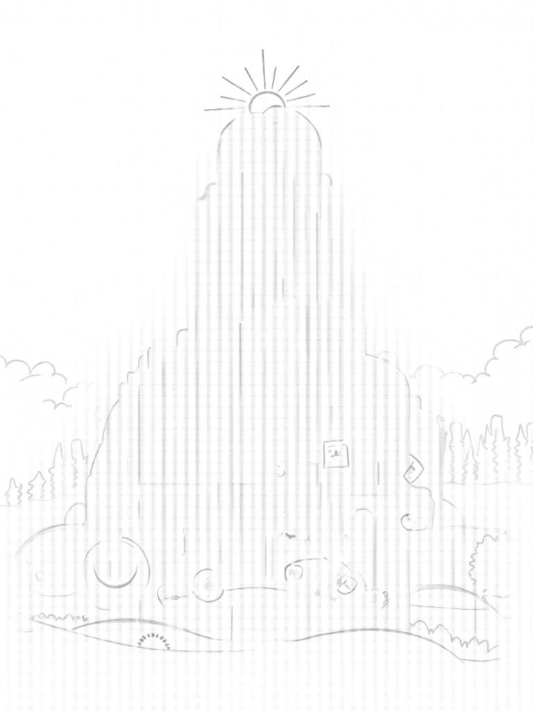 The swirling clouds above create an ever-changing sky, with beams of sunlight breaking through and illuminating the whole scene. In the foreground, stylized silhouettes of titans blend into the landscape, making it feel like they're part of the trees and hills. It's a cool mix of nature and fantastical elements that really sparks the imagination.