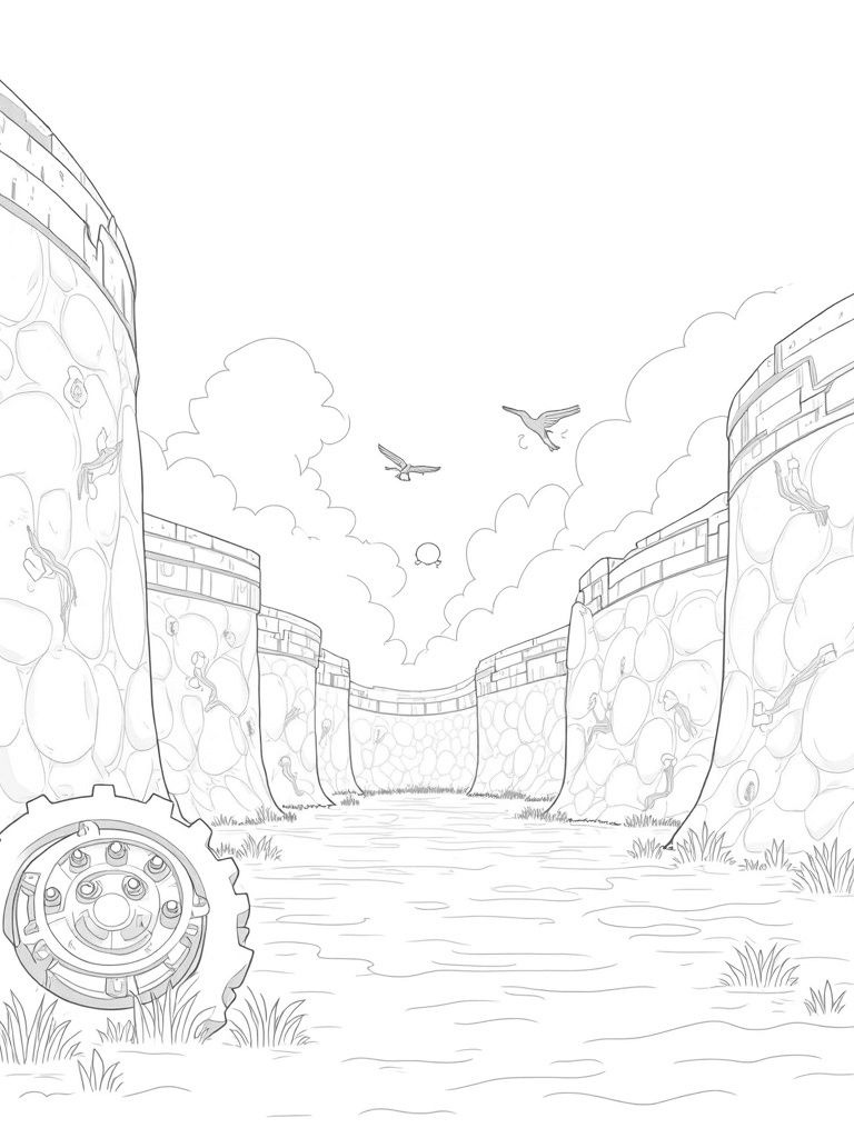 Giant Walls and Wildflowers in the Fortified City Coloring Page