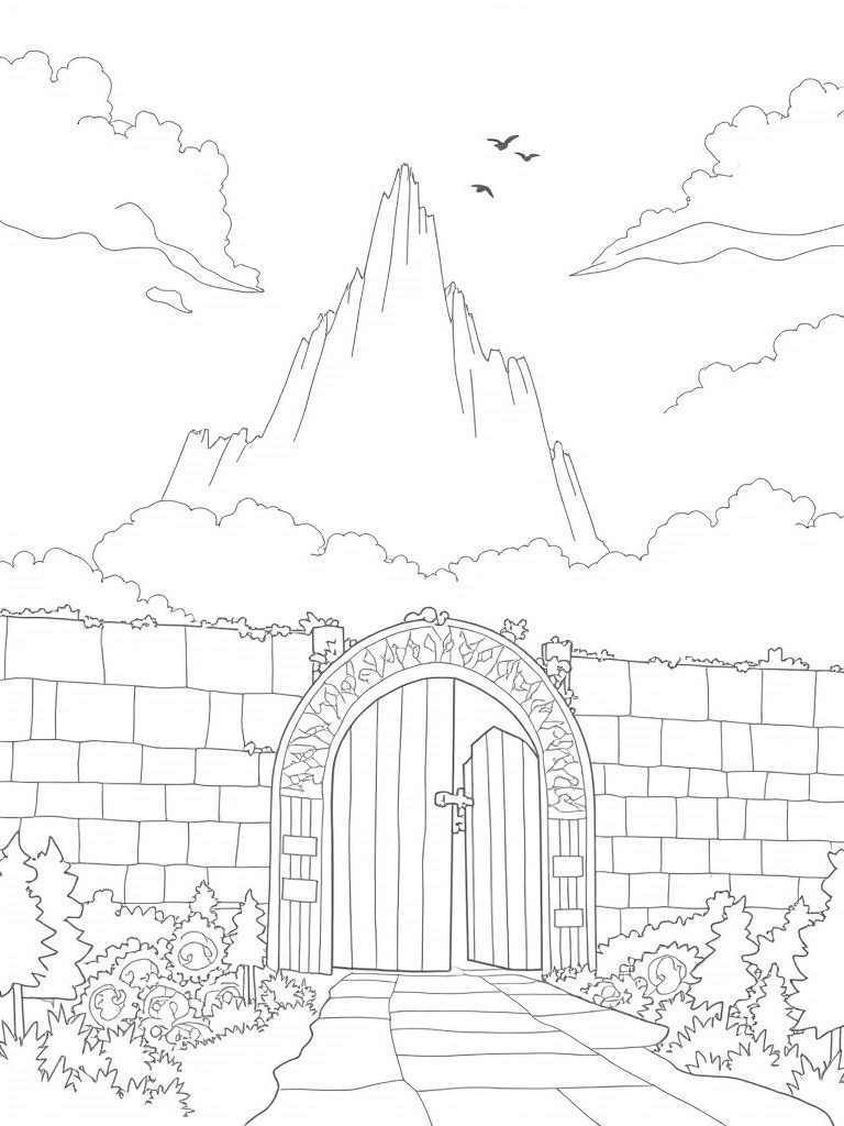 Majestic Stone Wall with Titan and Forest Coloring Page