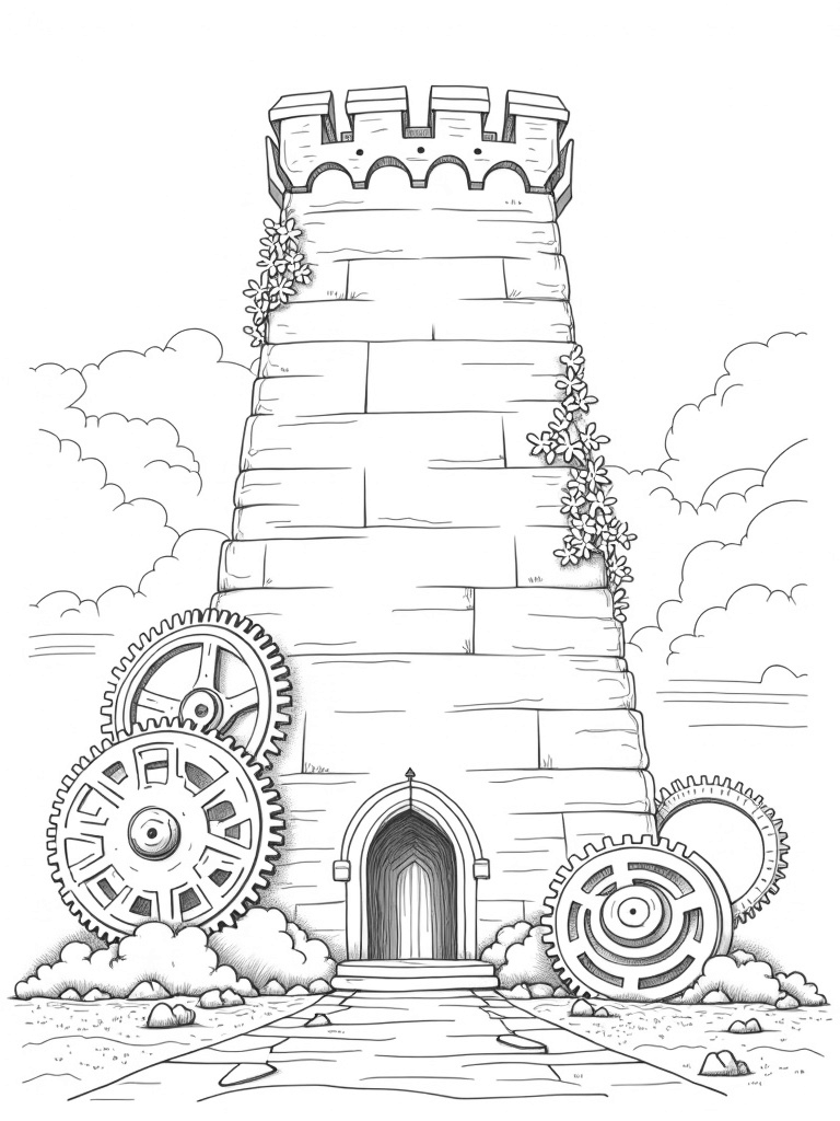 The Colossal Stone Wall with Giant Gears Coloring Page