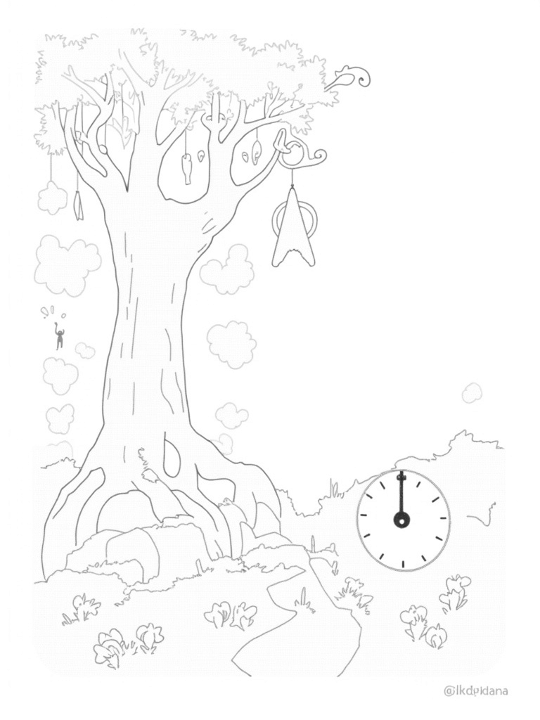 The Colossal Tree Over a Fractured Cityscape Coloring Page