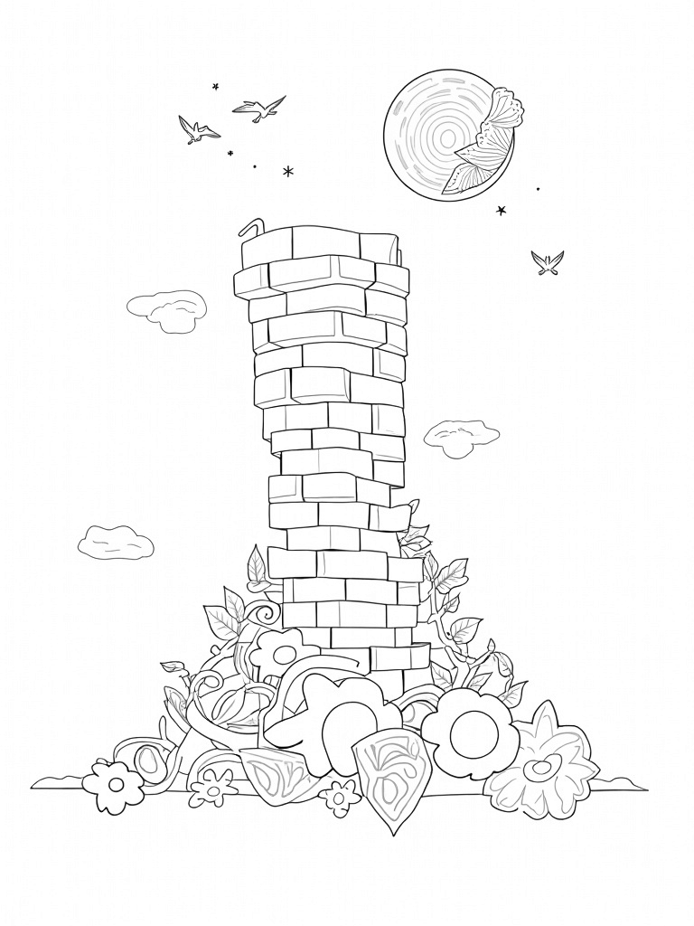 The Colossal Wall and Whimsical Flowers Coloring Page