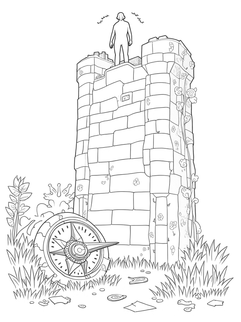 The Mysterious Stone Wall and Compass Coloring Page