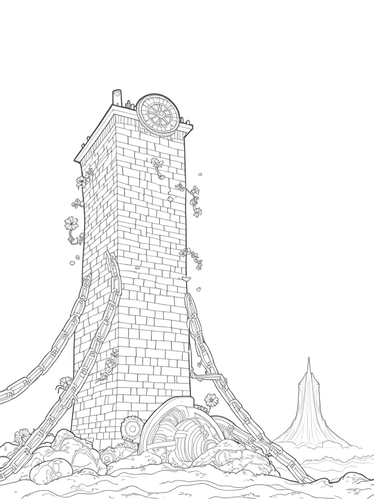 If you look closely, you’ll spot crumbling brickwork scattered around the scene, revealing hidden plants that peek through the cracks. There’s also a mysterious silhouette of a colossal titan in the distance, shrouded in mist. These little elements make this page more than just a coloring activity; they spark your imagination and invite stories to unfold as you bring the picture to life with color!