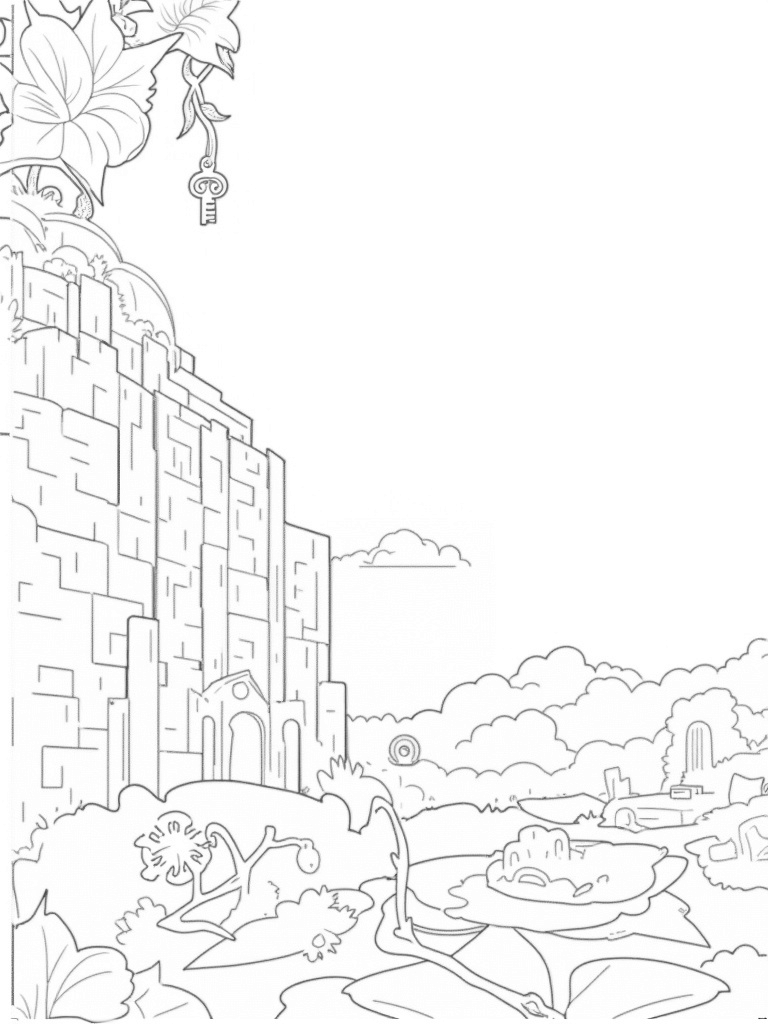 This coloring page is perfect for kids who love to let their imagination run wild. You can choose any colors you like for the flowers and the gear. Will you make the wall a bright blue, or maybe a classic stone gray? The floating boulders are just waiting for your creative touch. Plus, filling in the intricate details will keep you entertained for hours!