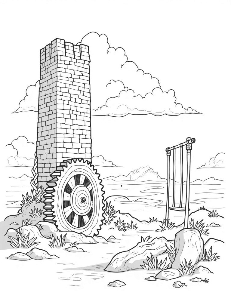 Titan's Wall and Gear Mechanism Coloring Page