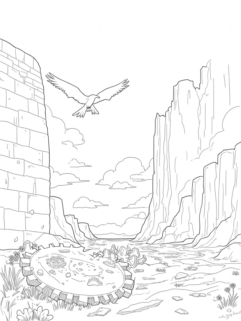 Titan's Wall with Gears and Shadows Coloring Page