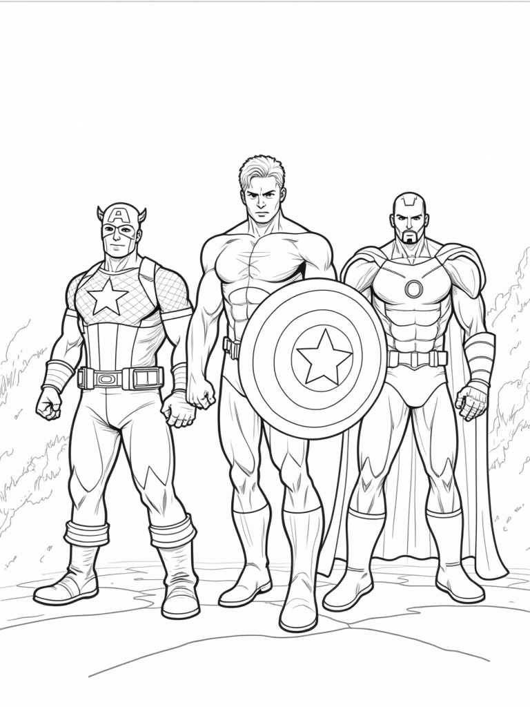 Assemble for Battle with Captain America, Iron Man, and Thor Coloring Page
