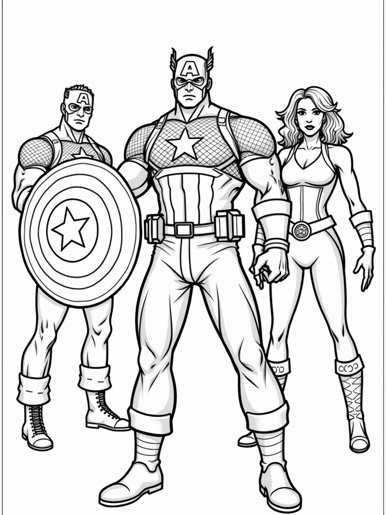 Avengers Assemble: Captain America, Black Widow, and Thor Ready for Battle Coloring Page