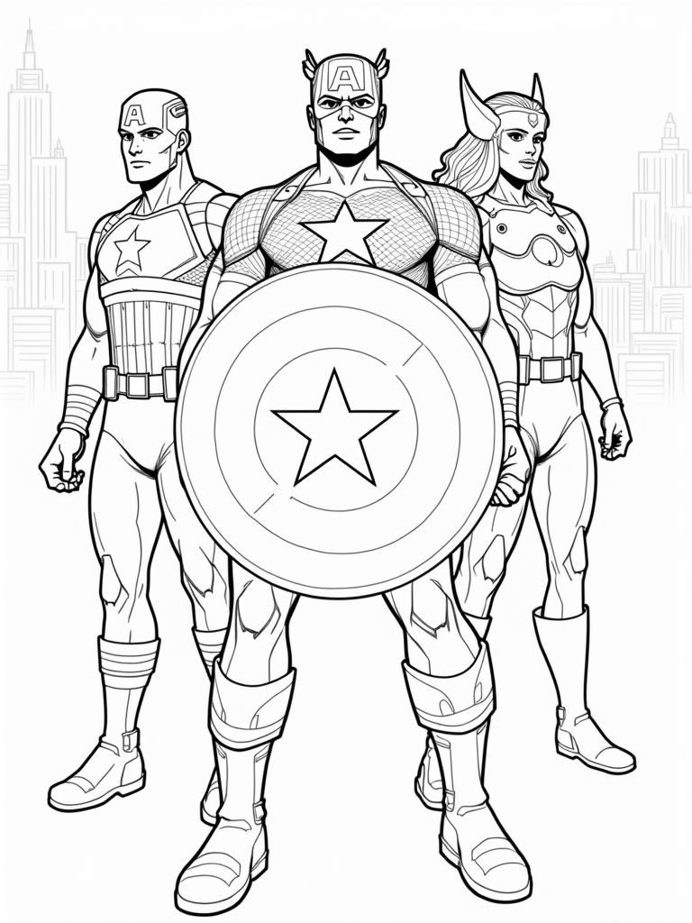 Avengers Assemble! Captain America, Iron Man, and Thor Coloring Page