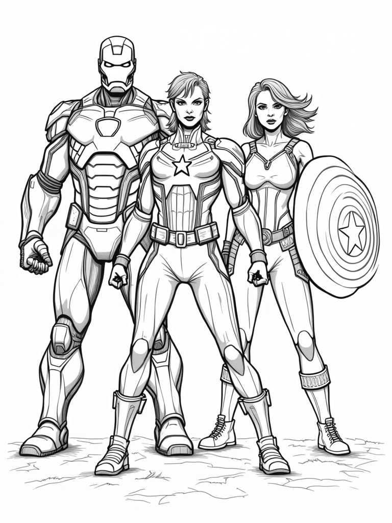 Avengers Assemble: Iron Man, Captain America, and Black Widow Coloring Page