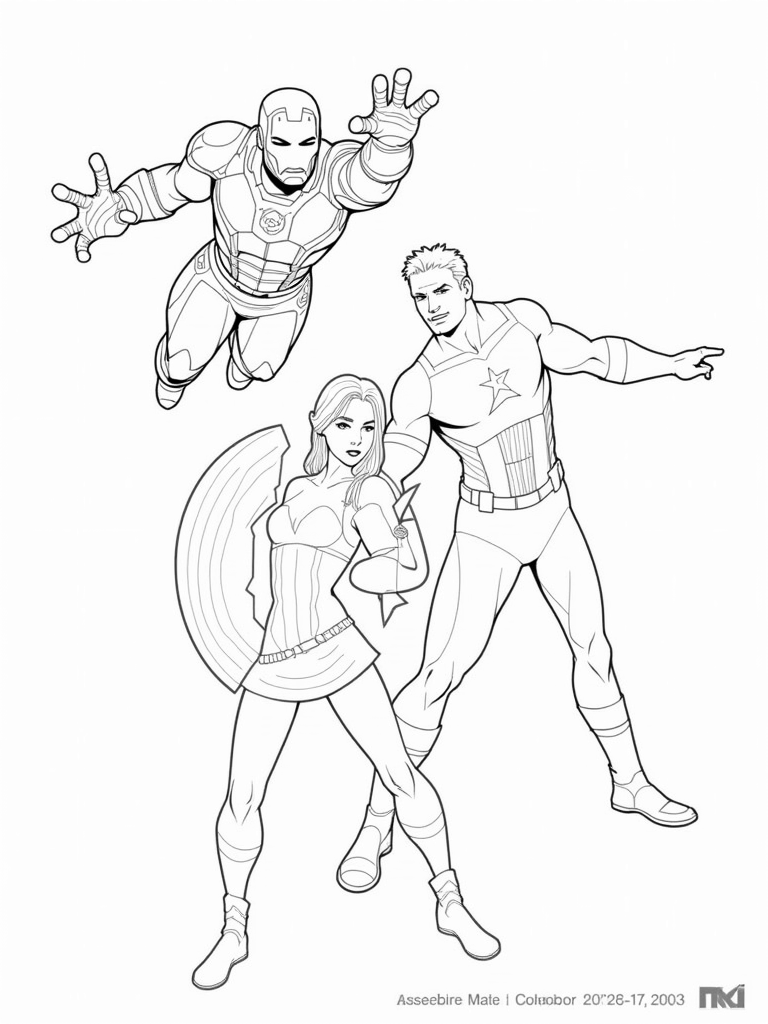 Avengers Assemble: Iron Man, Captain America, and Black Widow in Action Coloring Page