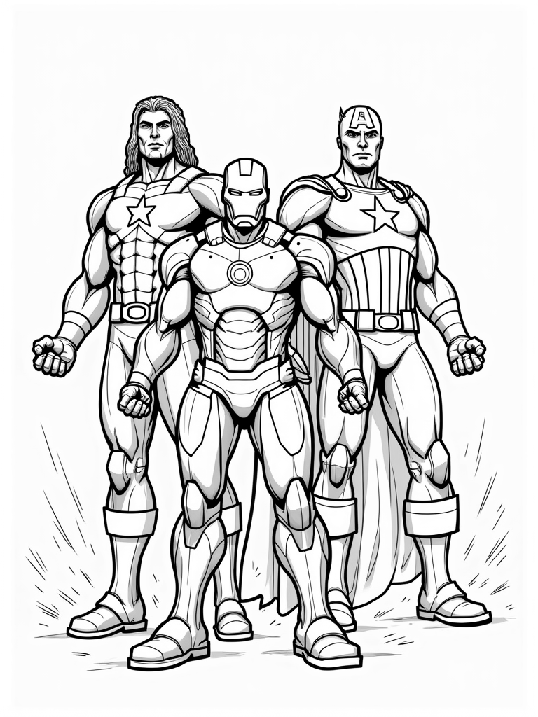 Avengers Assemble: Iron Man, Captain America, and Thor Coloring Page