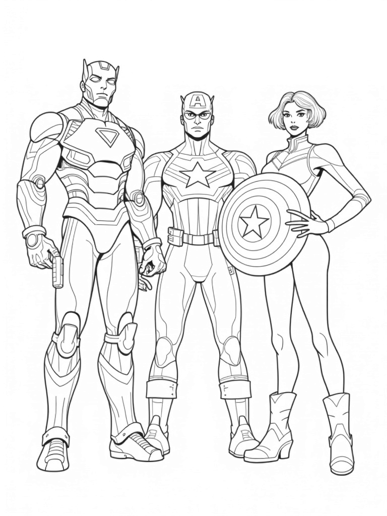 Avengers Unite: Iron Man, Captain America, and Black Widow Coloring Page