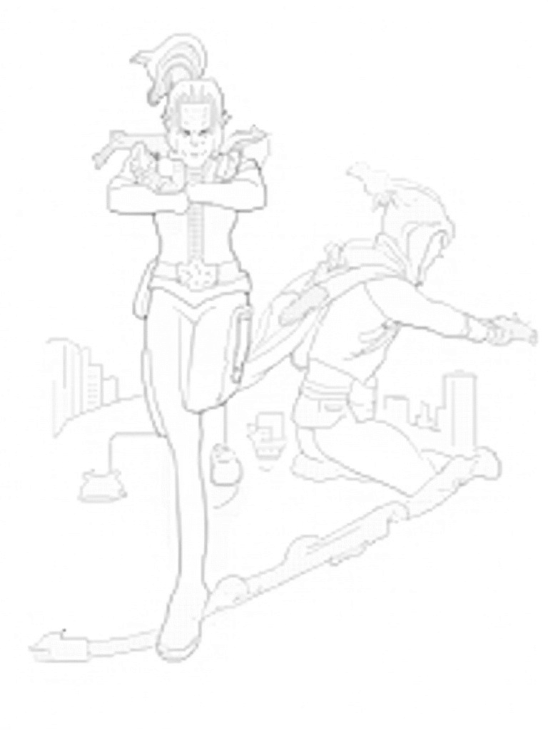 Black Widow and Hawkeye in Action Coloring Page