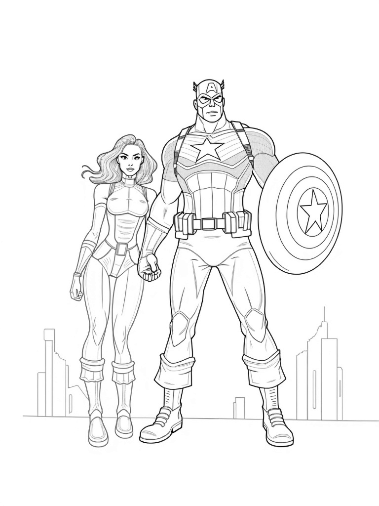 Check out this free, printable coloring page of Captain America and Black Widow in action! Perfect for Avengers fans, it’s packed with details that will inspire kids to unleash their creativity.