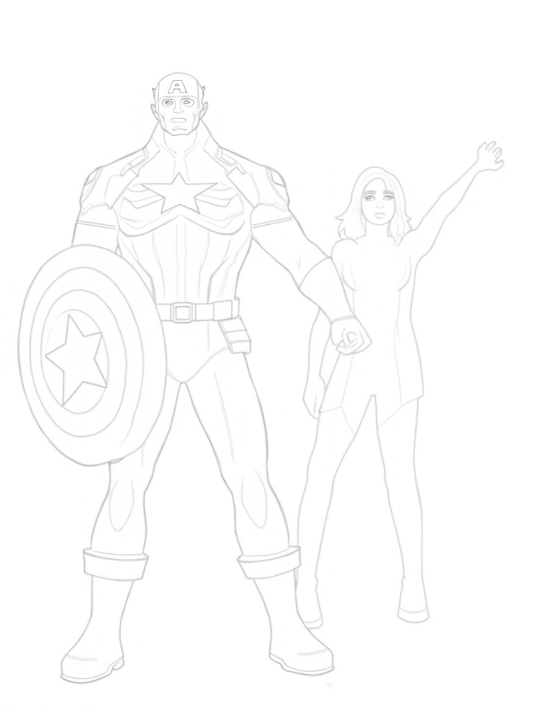 Captain America and Black Widow Team Up in Action Coloring Page