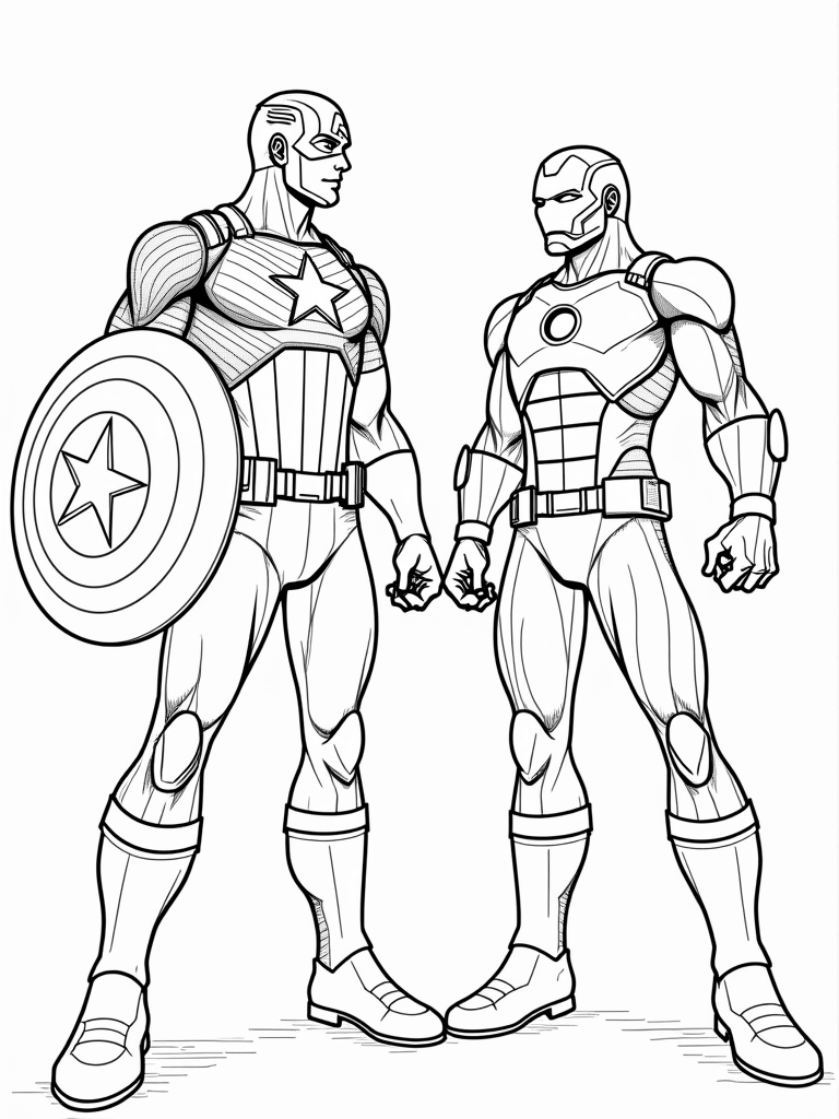 Captain America and Iron Man in Action Coloring Page