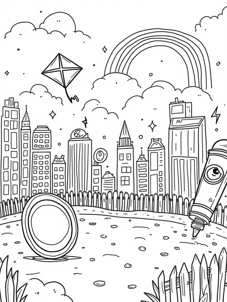 Check out this free, printable coloring page featuring a superhero cityscape! With a friendly shield, oversized crayons, and a sparkling rainbow, it’s perfect for kids who love superheroes. Dive into the fun and let your creativity shine!