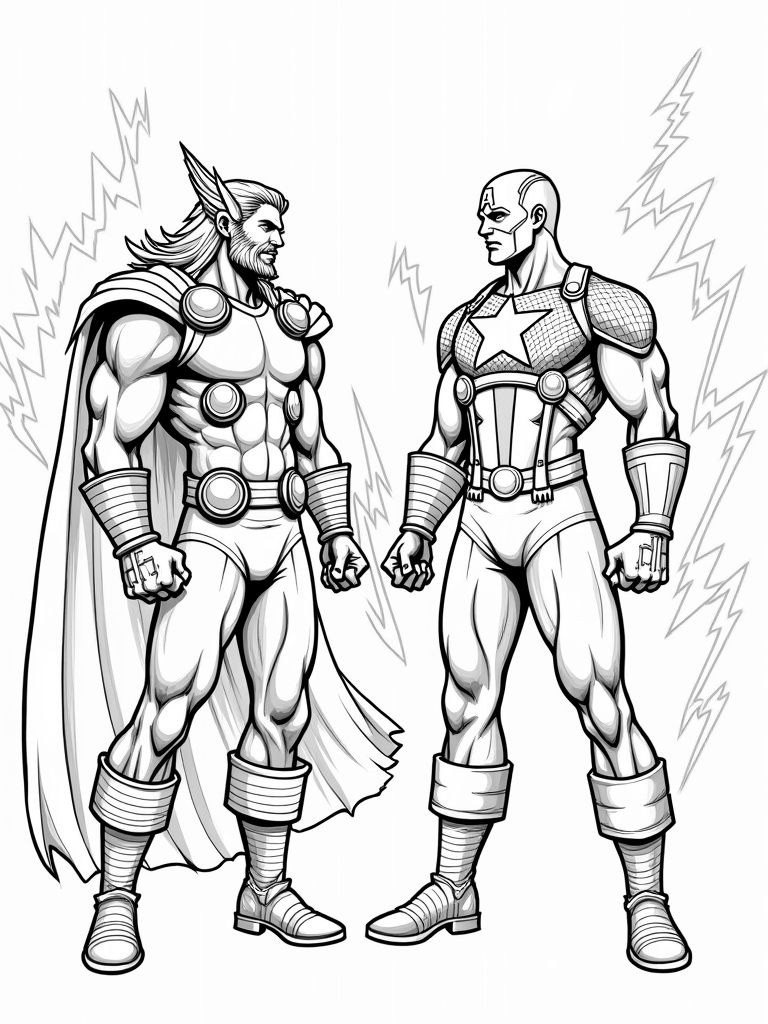 Thor and Captain America Face Off Coloring Page