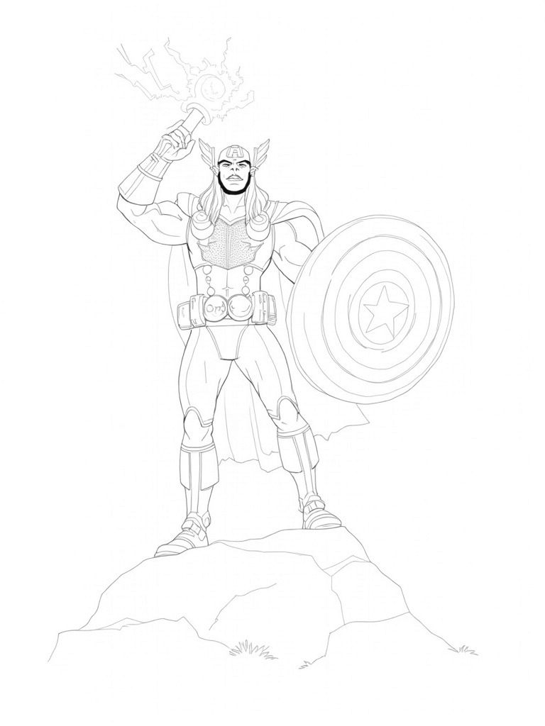 Check out this free, printable coloring page featuring Thor and Captain America from the Avengers! It's packed with action and perfect for kids who love to color superheroes.