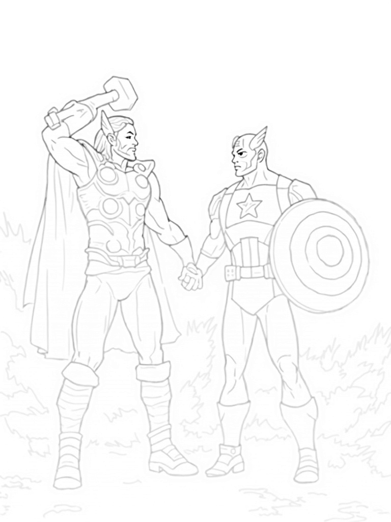 Thor vs. Captain America Battle Scene Coloring Page