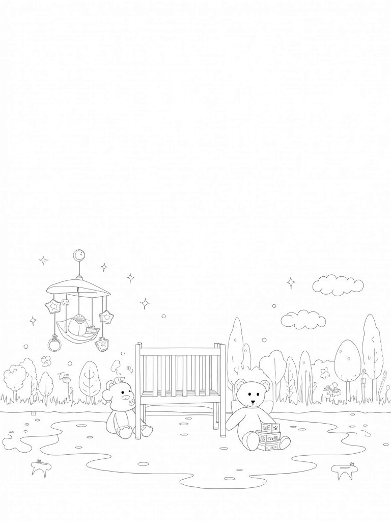 Charming Nursery with Floating Clouds and Plush Toys Coloring Page