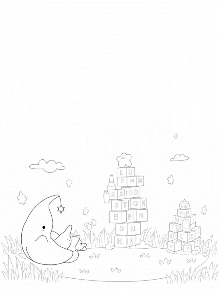 Cozy Nursery with Moon and Star Plush Toys Coloring Page