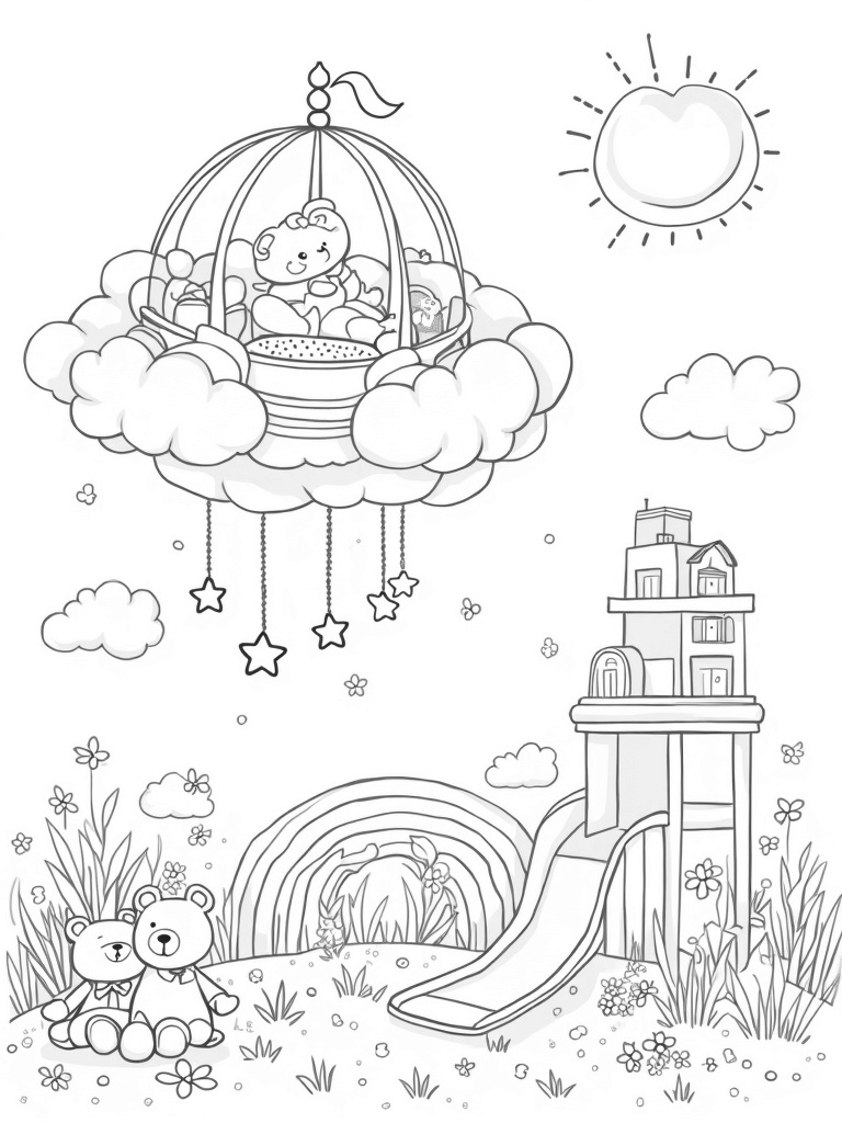 Dreamy Cloud Nursery with Rainbow Slide Coloring Page