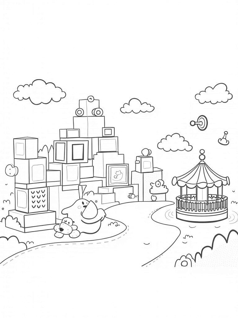 Dreamy Nursery with Giant Teddy Bear and Building Blocks Coloring Page