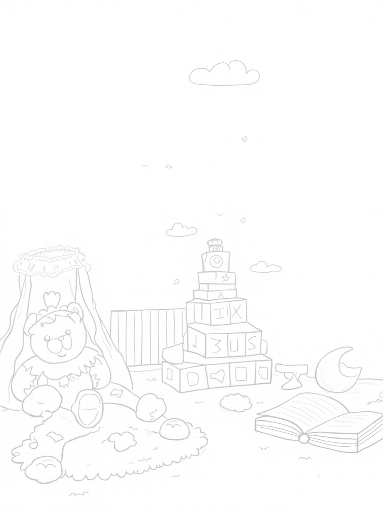 Check out this free, printable coloring page featuring a dreamy nursery filled with a giant teddy bear and whimsical toys. Perfect for baby-themed fun, it’s an easy way to spark creativity in young artists.