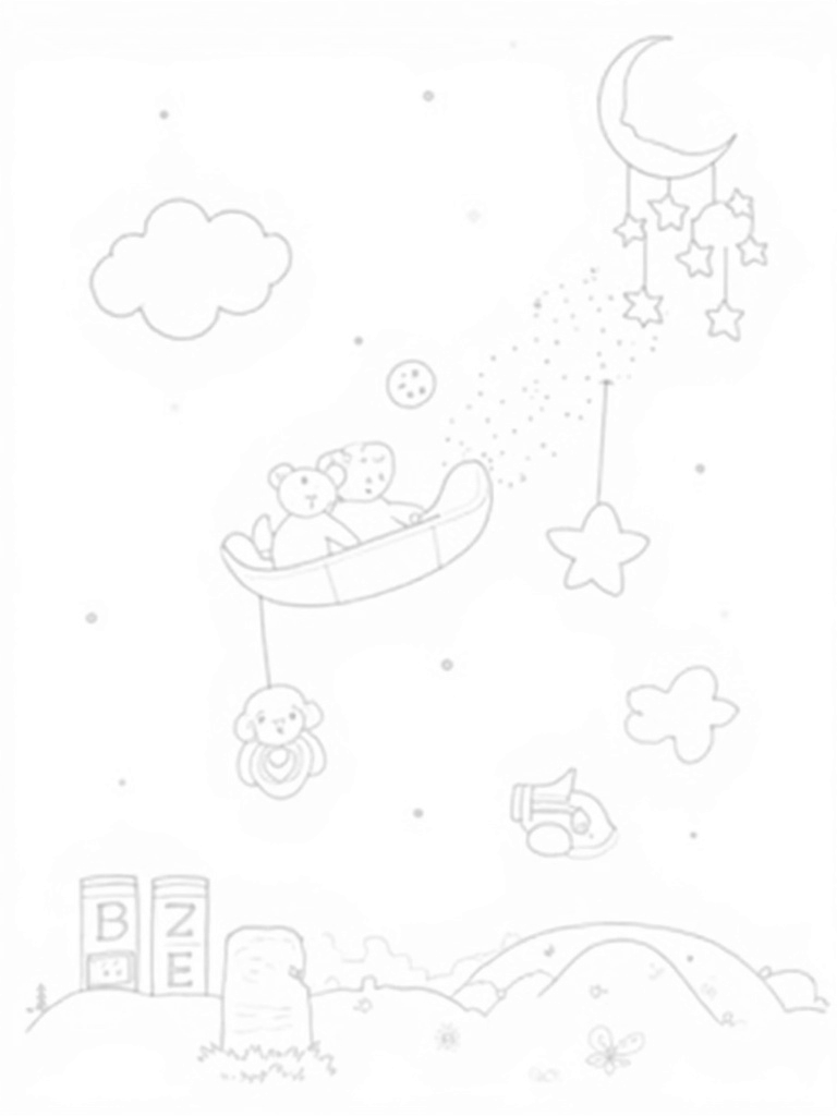 You’ll find a dreamy nursery floating among fluffy clouds, where an enormous plush teddy bear sways gently in a cradle made of moonlight. It’s like something out of a bedtime story! Nearby, a mobile of brightly colored stars dangles from a crescent moon, casting fun shadows below that are just perfect for imaginative play.