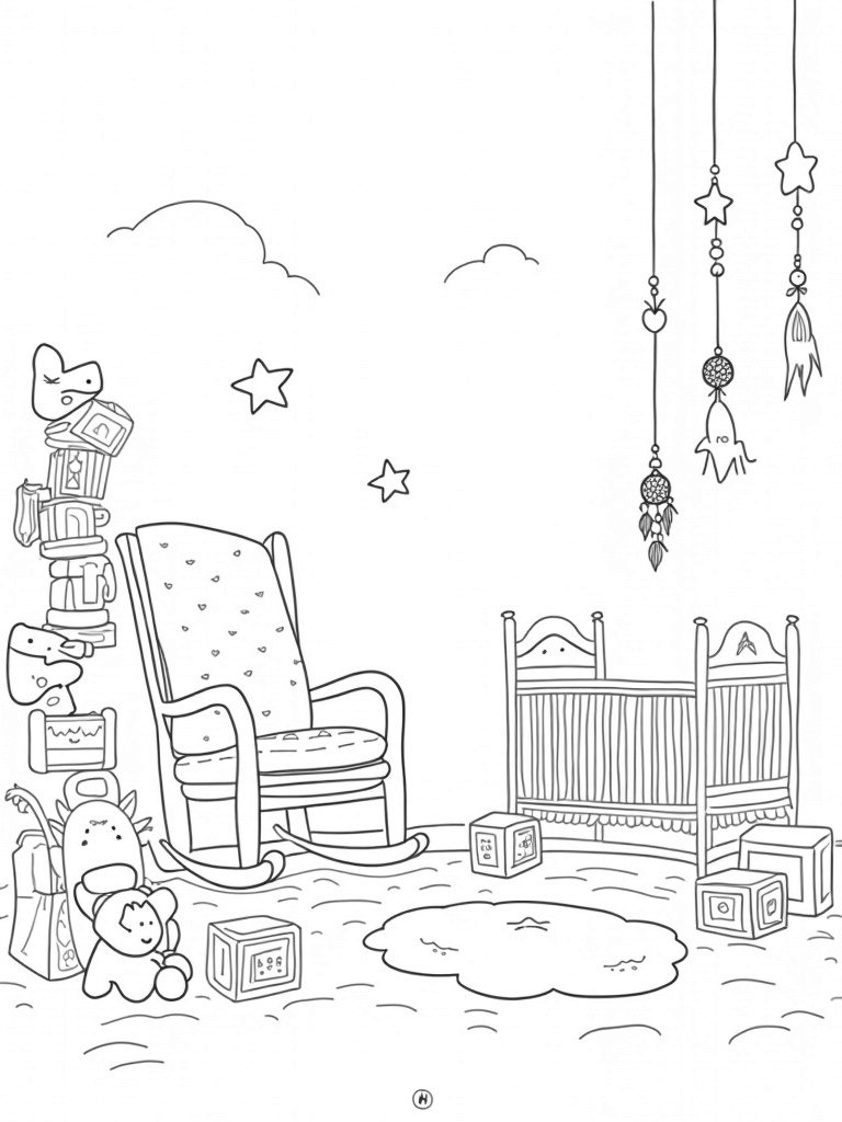 Giant Rocking Chair and Plush Toys in a Cozy Nursery Coloring Page