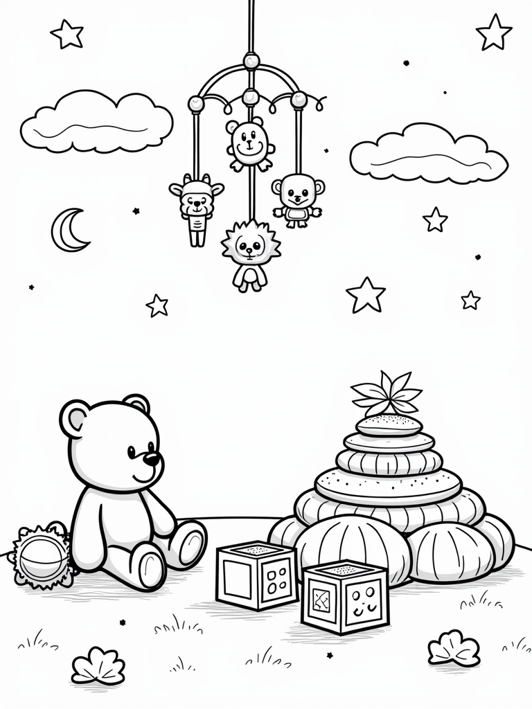 Check out this free, printable coloring page featuring a cozy nursery with oversized baby blocks and a friendly mobile. Perfect for little ones who love to color and play, this adorable design will spark creativity and joy!