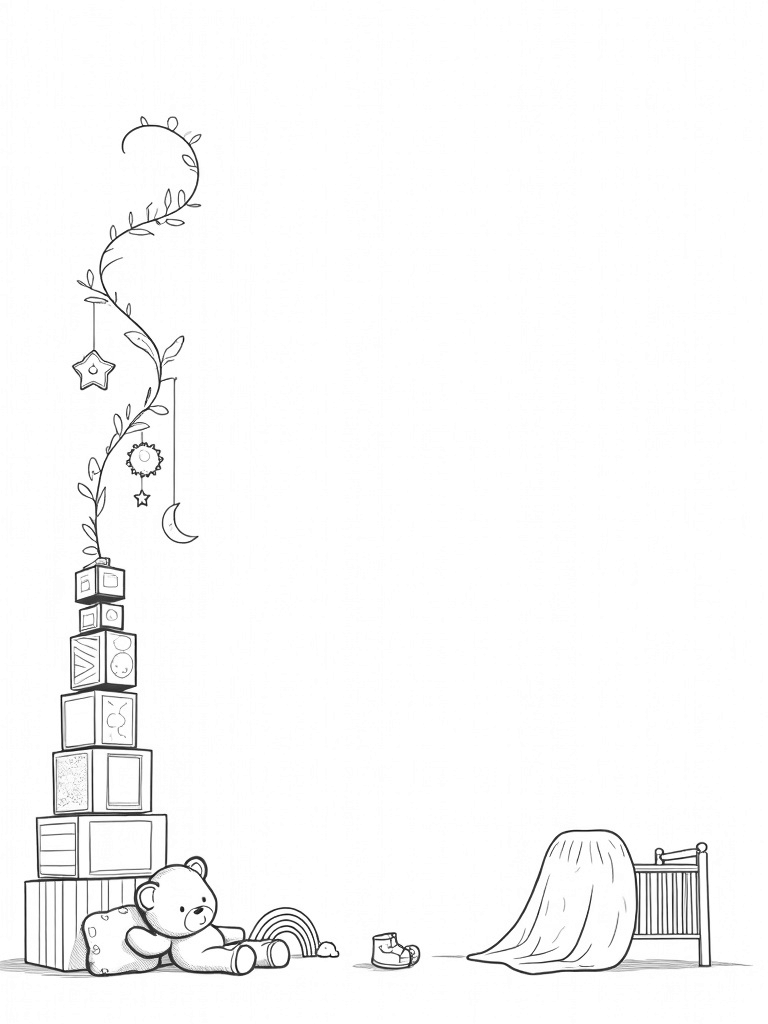 Oversized Blocks and a Cozy Teddy Bear in a Dreamy Nursery Coloring Page