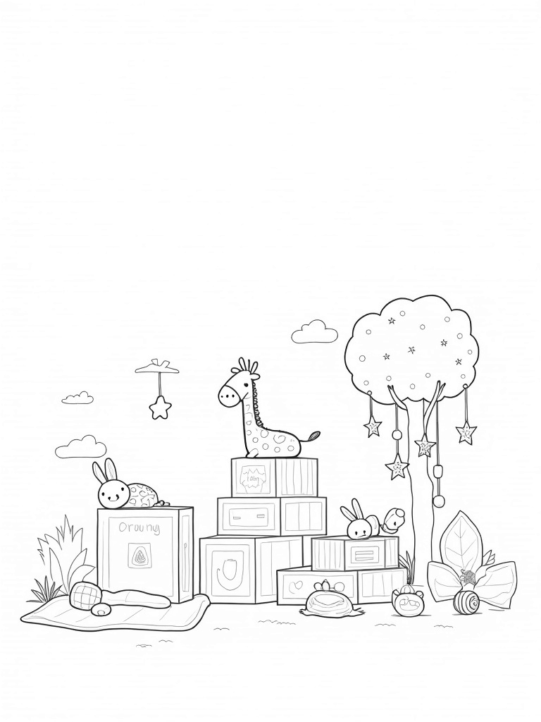 Check out this adorable free printable coloring page featuring a cozy nursery with oversized building blocks and cute plush animals. Perfect for little ones who love to color and explore their imagination!