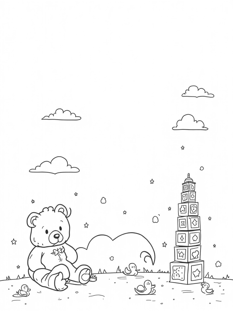 Oversized Toys in a Dreamy Nursery Landscape Coloring Page
