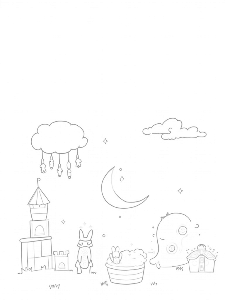 Right next to the rattle, there’s a moon-shaped crib cradling a fluffy pillow cloud, perfect for a little dreamer. This whole coloring page is just bursting with playful elements that will spark creativity and joy in every child’s heart.