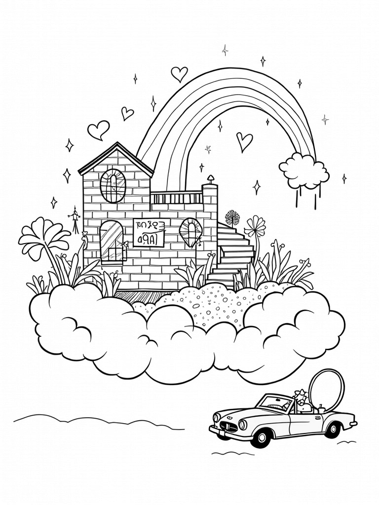 Dream House in the Clouds with Candy Staircase Coloring Page