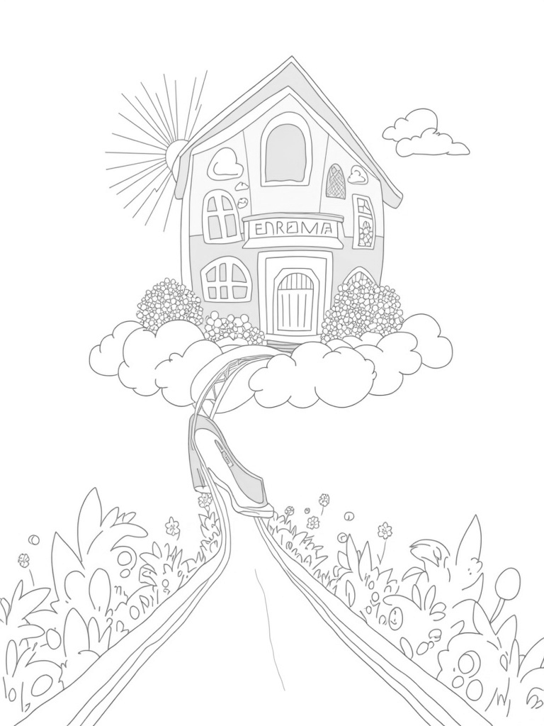 Dream House on a Cloud with Fashion Runway Coloring Page