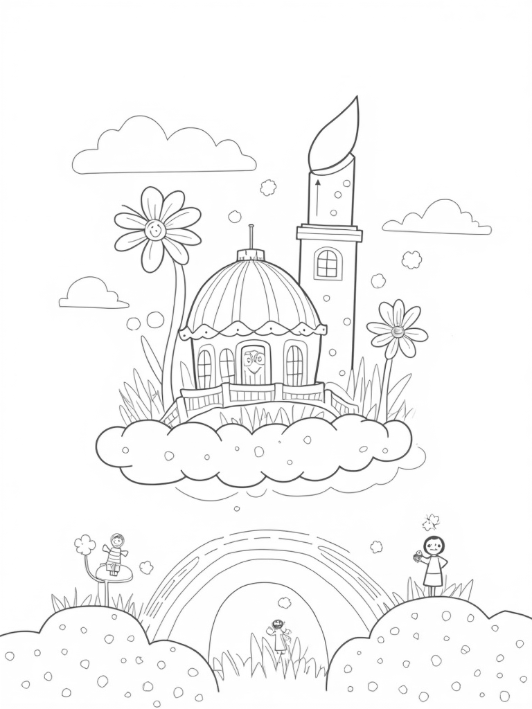 Dreamhouse in the Clouds with a Giant Lipstick Tower Coloring Page